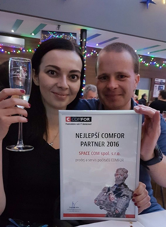 SPACE COM spol. s r. o. se může pyšnit oceněním „NEJLEPŠÍ COMFOR PARTNER 2016 – prodej a servis počítačů COMFOR“. Z ocenění máme velkou radost a doufáme, že i pro Vás – naše zákazníky – jsme tím nejlepším partnerem v oblasti informačních technologií a poskytování internetu.
